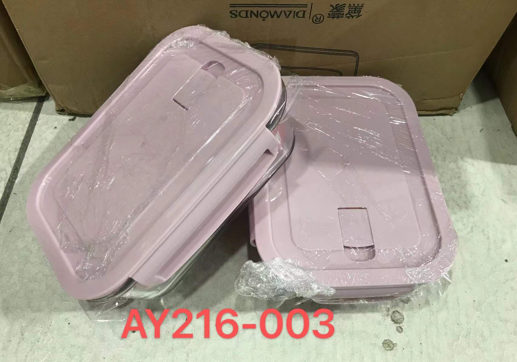 Big long glass lunch box BXW101 AY216-003/大长白粉盖保鲜碗