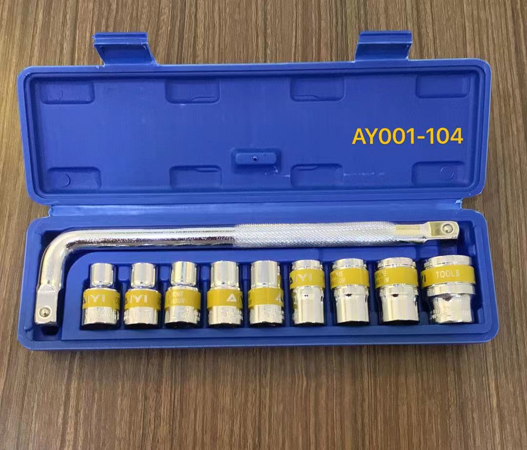 1/2" 10PC Socket set AY001-104/10PC黄带套筒弯杆组套10-24mm