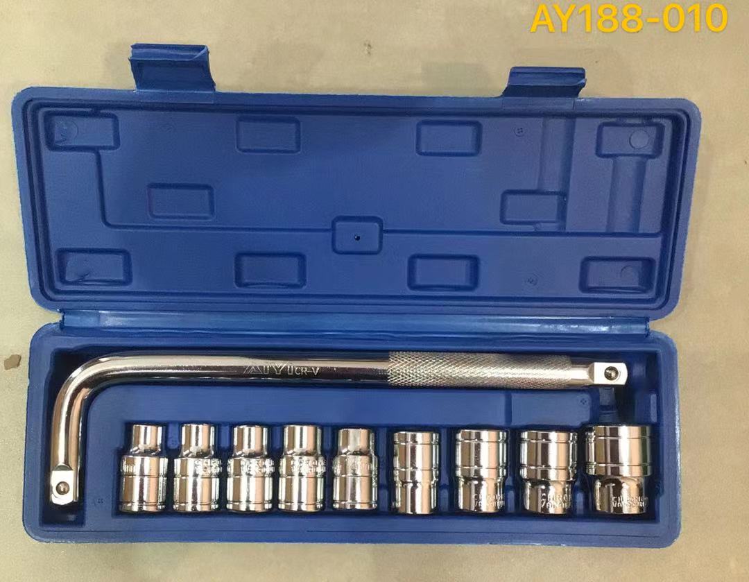 1/2" 10PC Socket set AY188-010/10PC黄带套筒弯杆组套10-24mm
