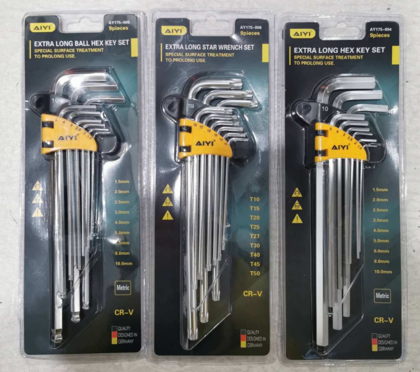 9 Pieces extra long flat hex key set AY175-004/9PC特长平头内六角