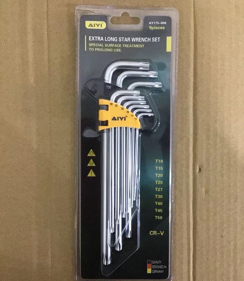 9 Pieces extra long star hex key set AY175-006/9PC特长米字内六角