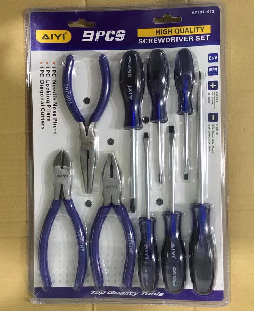 9PCS High quality screwdriver set AY191-012/6件套方柄+3件套钳子组套(宝蓝色)