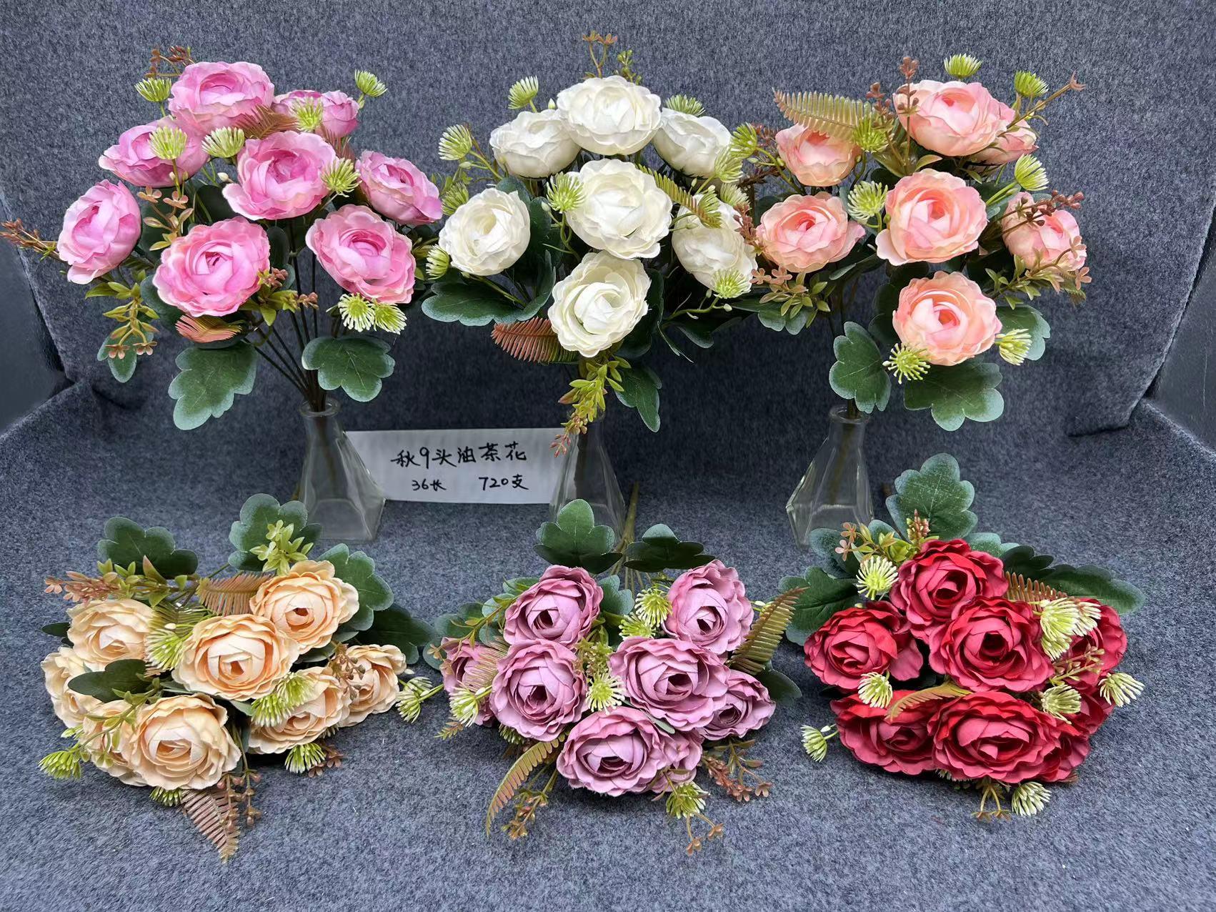 Artificial flower AY367-088/秋9头油茶花(假花)