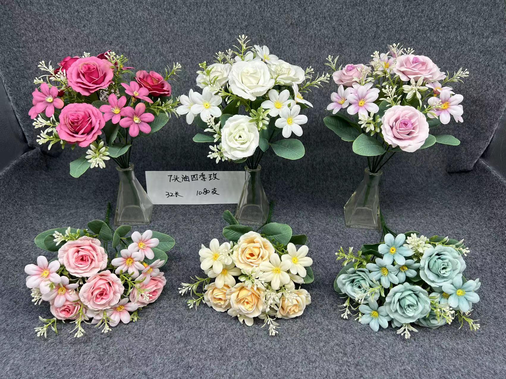 Artificial flower AY367-097/7头油四季玫(假花)