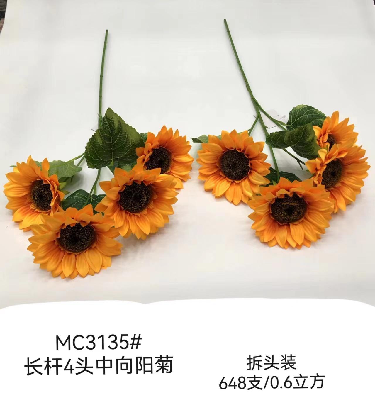 Artificial flower AY367-132/MC3135,长杆4头中向阳菊(假花)