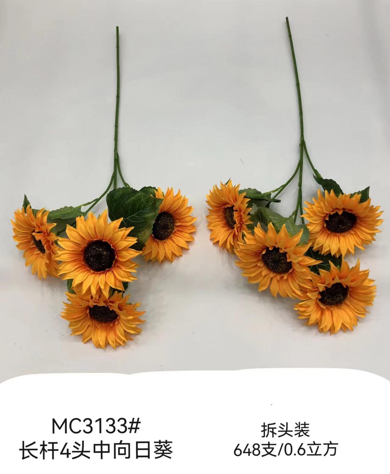 Artificial flower AY367-133/MC3133,长杆4头中向日葵(假花)