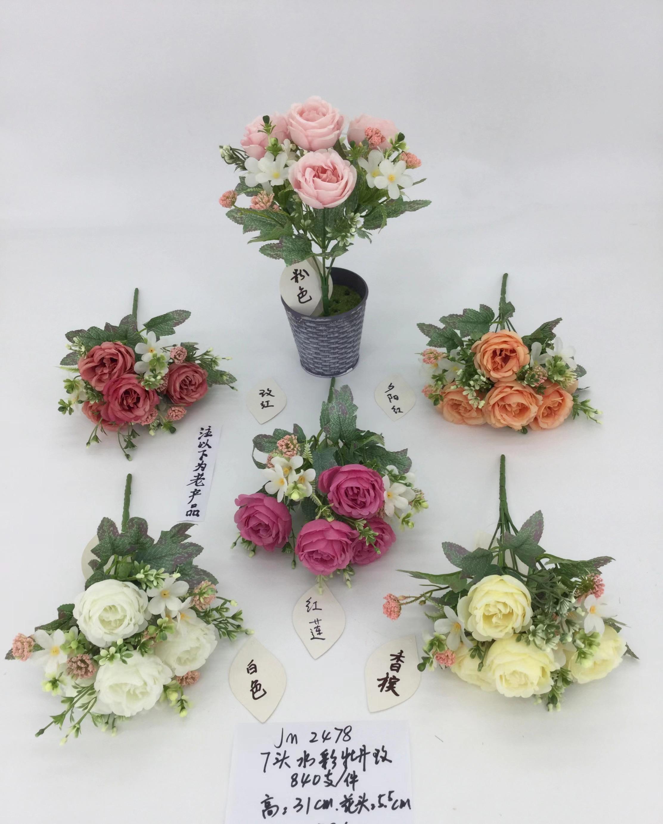 Artificial flower AY367-156/7头水彩牡丹玫(假花)